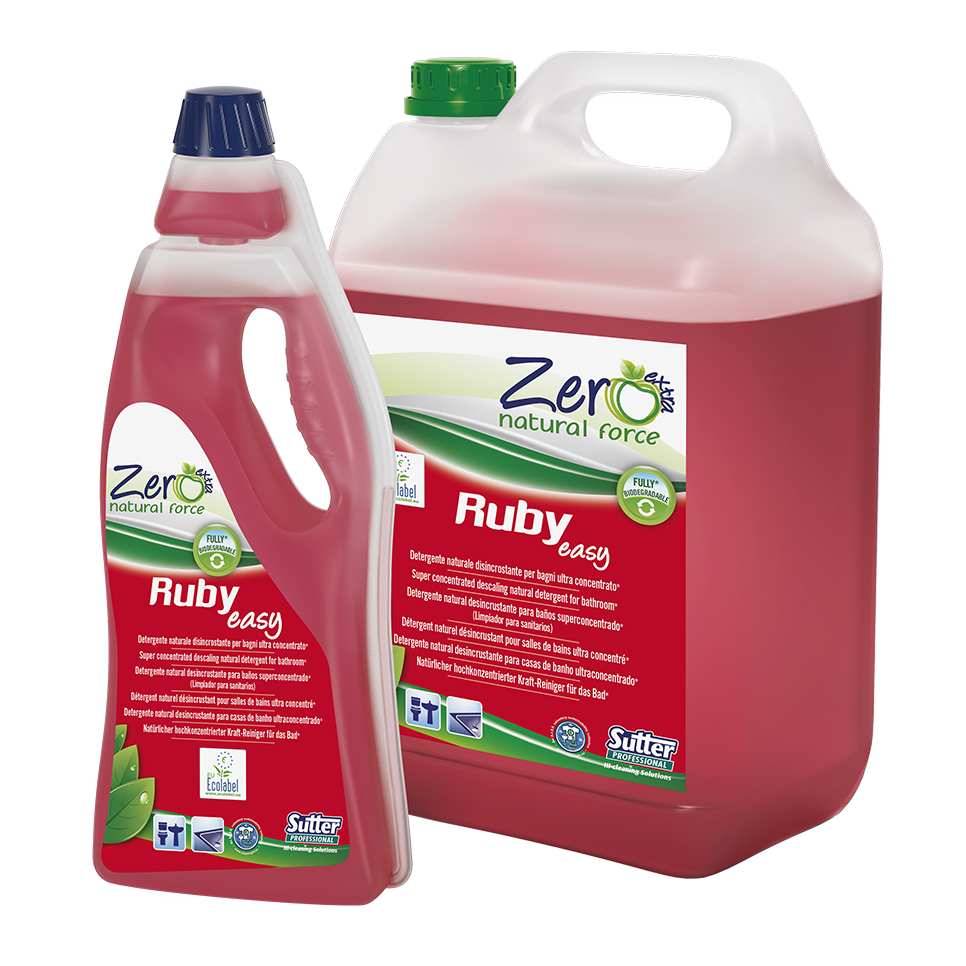 Detergente disincrostante super concentrato, a base di acido organico di origine naturale (acido citrico). Ideale per l'ambiente bagno. Indicato per la pulizia quotidiana di rubinetterie, vasche, doccia, piastrelle, ecc. L'utilizzo giornaliero di Ruby Easy, grazie agli agenti anti-ridepositanti, aiuta a prevenire la formazione di incrostazioni.