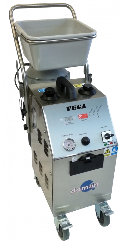 Il VEGA PLUS è un potente pulitore a vapore con funzione di aspirazione integrata. Realizzato per la pulizia di interni, produce vapore saturo e mantiene un'elevata pressione di lavoro stabile.