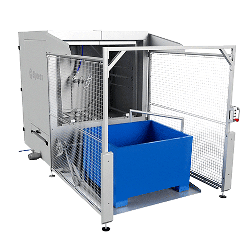 Durante il lavaggio principale sia l'esterno che l'interno dei box vengono puliti da un braccio irroratore rotante, azionato da un motore. Opzionalmente può essere dosato un detergente. A seconda del livello di sporco depositato sui box, il tempo di lavaggio può essere regolato fino a un massimo di 30 minuti. Dopo il lavaggio principale il box viene risciacquato con acqua pulita per rimuovere i residui di detersivo.