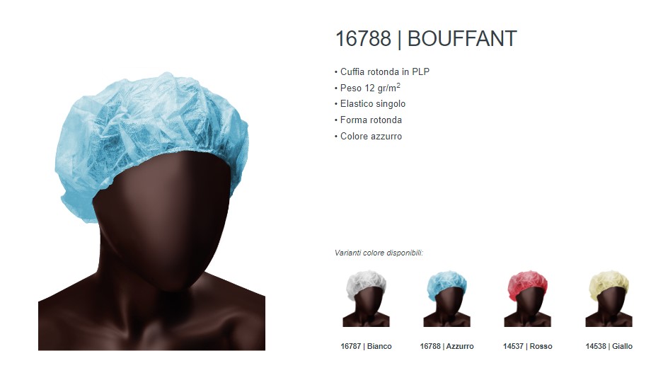 E’ un indumento destinato al personale impiegato in attività del settore medicale ed ospedaliero. La cuffia tonda assicura igiene e protezione da rischi minori.