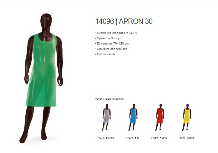 E’ un indumento destinato al personale impiegato in attività del settore agroalimentare ed industriale. Il grembiule assicura igiene e protezione da rischi minori.