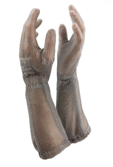 - Guanto antinfortunistico in acciaio inox con protezione di mano e avambraccio. Questo guanto antitaglio con manica lunga 20 cm ha una chiusura innovativa composta al 100% da acciaio inox elasticizzato che si adatta automaticamente alla forma del polso e dell'avambraccio. Ideale per macellai e per chi lavora a contatto con materiale affilato in salumifici, prosciuttifici, macelli e industrie alimentari.