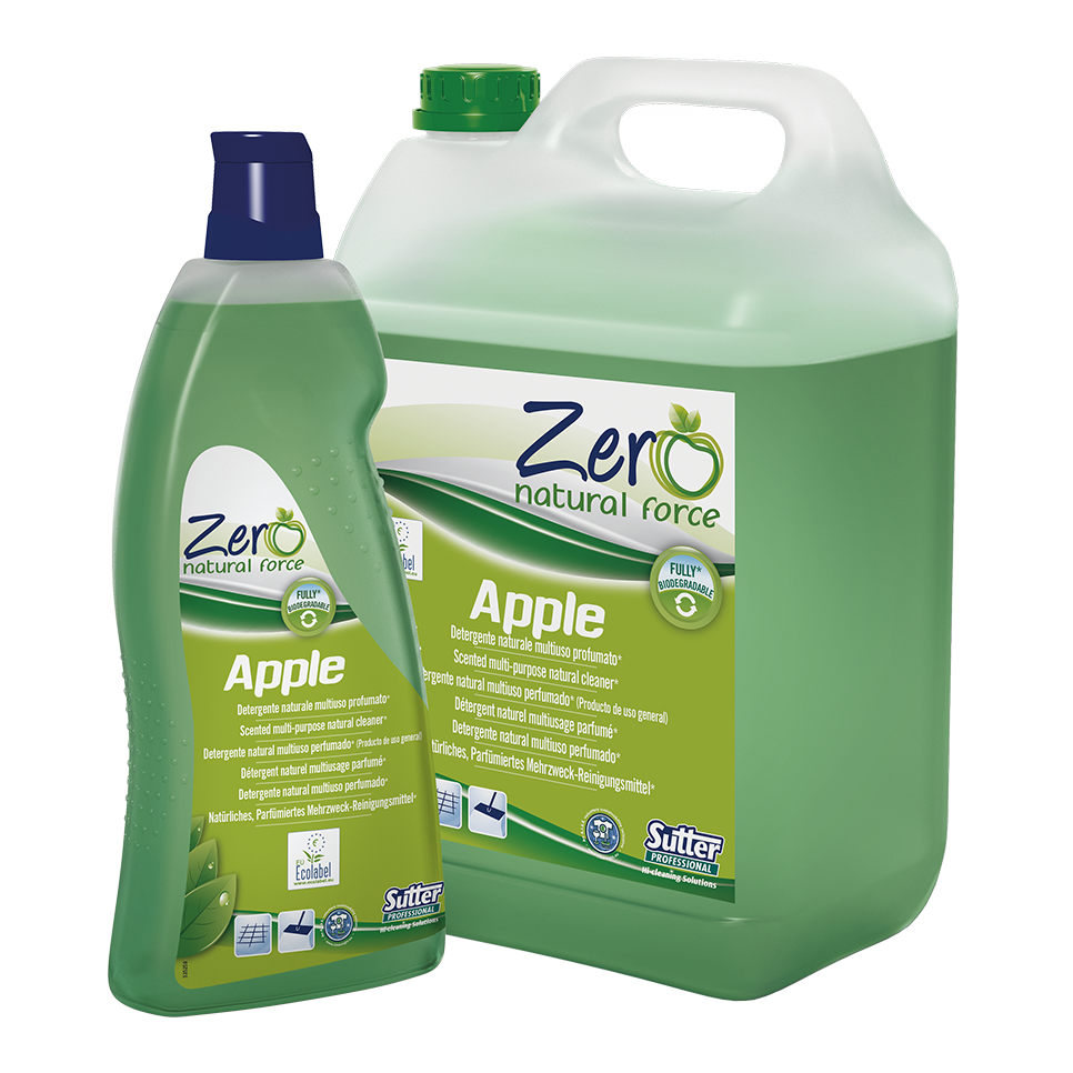 Detergente multiuso universale per la pulizia quotidiana delle superfici dure. Ottimo anche in lavasciuga. Profumo alla mela verde, senza allergeni (Reg. 648/2004), delicato e persistente.